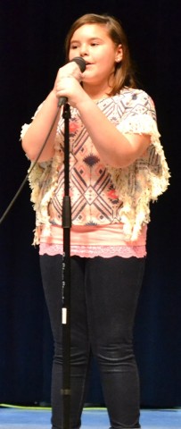 In a bittersweet performance before relocating to Texas, Clara Goins (above) sings "He is Within", a self-written song to claim first place in the fourth and fifth grade division during New Kent Elementary School's seventh annual talent show sponsored by NKES PTO. Twenty-four acts took to the stage, performing in front of a crowd of more than 350 people with a variety of acts and entertainment. Below, Hayden Hillis rocks to the beat of "Watch Me" and dances his way to first place in the PreK-third grade division, while at bottom, the Coyle Sisters (Chloe, Cambell, and Carrington), construct a pyramid as part of their gymnastics routine to earn silver medals in the fourth and fifth grade division. More pictures can be seen in the photo gallery on this website.Andre' Jones photos