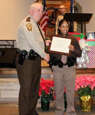 Toni Harris (right), a native of Charles City, receives her certificate from the Hanover Criminal Justice Academy after a Dec. 5 graduation ceremony. Harris, a 2011 graduate of Charles City High School, also received recognition for achieving the highest academic score among 19 graduates.