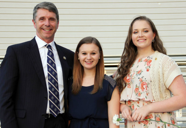 New Kent students Bobbi Pirhala and Isabella Cashin pose with Congressman Rob Wittman following RCC's Phi Theta Kappa Honor Society induction ceremony.