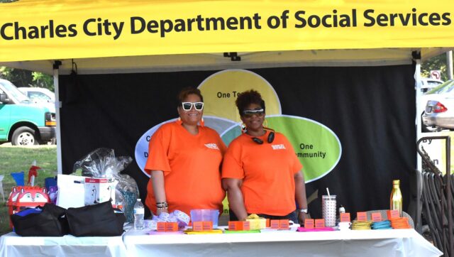 Natalie Crump (left) and Latoya Johnson-Davis (right) operate the booth for Charles City County’s Social Services Department as part of a resource fair held May 21 at the Charles City Administration and Government Complex. The event acted as an outreach to citizens by providing support and a number of services that include job employment tips, energy conservation advice, and assistance from county departments.Robb Johnson photo