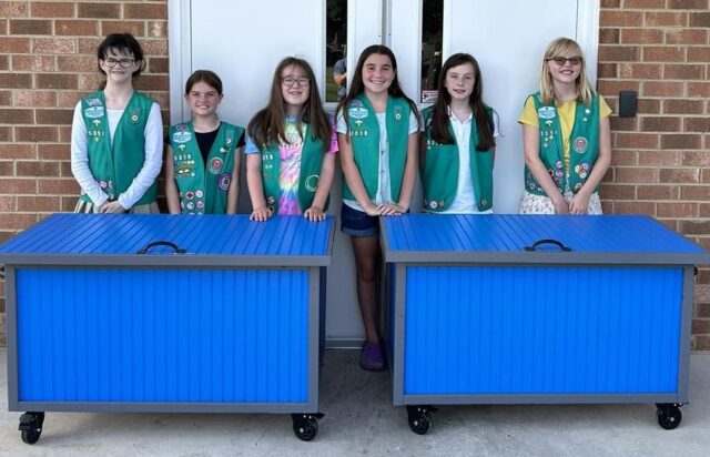 New Kent Girls Scout Junior Troop 5318 earned a Bronze Award for completing a service project for the community. The group designed and donated two weather-resistant boxes for Corinth Baptist Church that can be used to collect non-perishable food, clothing, school supplies, and other items to support the local community. The Bronze Award is the highest honor a Girl Scout Junior can achieve, requiring at least 20 hours of participation on the project.