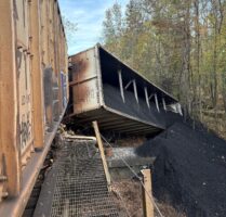 An investigation is underway after a train derailed in New Kent County near the Charles City border on Saturday afternoon. In a press release, around 3:10 p.m. on Oct. 25, approximately 53 coal cars and two locomotives derailed between Roxbury Road in Charles City County and Mountcastle Road in New Kent. Photos show coal from the trains spilled into the wetlands, as well as rails bent and shredded. No injuries were reported as a result of the accident. Emergency personnel from New Kent, James City, and Charles City responded to the scene, with CSX Police joining the investigation to find…