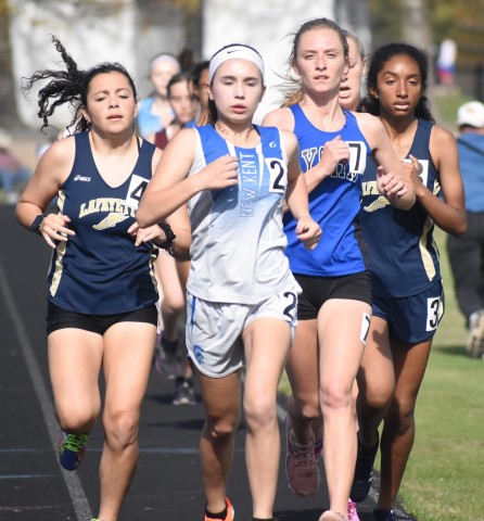 New Kent’s Tabitha Gill (2) leads a pack in the opening heat of the girls’ 1600-meter run.Robb Johnson photos
