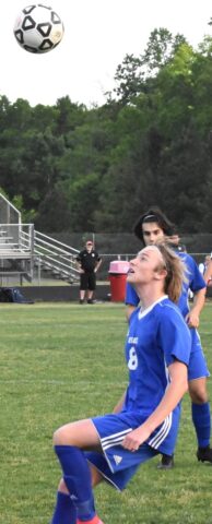 New Kent’s Conner Bailey (8) prepares for a header to set up a teammate.Robb Johnson photo