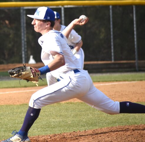 New Kent’s Carson Seely commands the mound in earning a win for the Trojans over York.