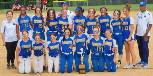 New Kent’s Middle School Lady Lions softball team completed an undefeated season by winning the Bay Rivers District Championship. The team defeated Page Middle School 6-1 in the title game to finish the season with an 11-0 record.