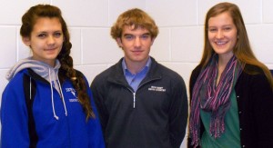 New Kent High School’s math team, (l to r) junior Megan Turner and seniors Chris Rolince and Alyssa Bushhouse, captured first in the Rappahannock Community College Math Contest held Nov. 18. The win marks the second straight year a New Kent team has prevailed against public and private schools in the area.