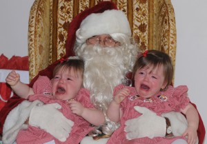 For now, 18-month-old twins Paige (left) and Claire Richards are not Santa Claus fans, but give them some time and they’ll come around much like another set of sisters (below), Taylor (left) and Sydney Eubank, ages six and four, respectively. The scenes took place during the New Kent Junior Woman’s Club annual Breakfast with Santa on Dec. 1 inside the Providence Forge Recreation Center.Alan Chamberlain photos