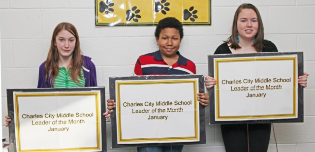 Charles City Middle School student leaders for January are (l to r) Cassandra Braten (Grade 6), DeAndre’ Gardner (Grade 7), and Taylor Richardson (Grade 8).