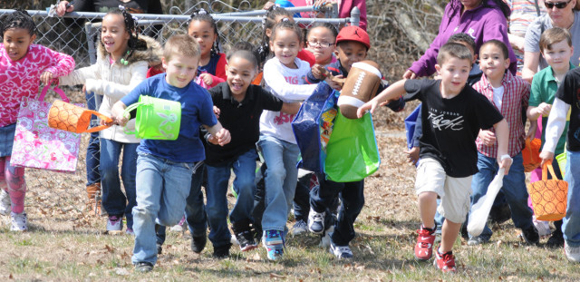Kids sprint at the start of the annual Charles City Parks and Recreation/Charles City 4x4 Club Easter Egg Hunt at Harrison Park on March 30. Over 125 kids took part in the event.Alan Chamberlain photo