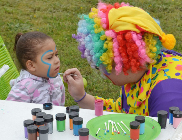 Charles City celebrated its “Community Day” last Saturday at Harrison Park. Guests were treated to music, face painting, games, and a variety of informational booths. Above, three year-old Kaylee Stewart makes time in her schedule to get her face painted by a clown while below, cancer survivor Gail Thompson displays her eye-catching pink booth to make on-lookers aware of the disease.Andre' Jones photos