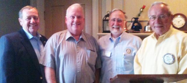 Stephen E. DuBosky, second from left, is the newest inductee into the New Kent Rotary Club. Area Governor Frank Ferrante (second from right) presided over the May 6 ceremony with an assist from DuBosky’s sponsor Gary Green (far right). At far left is club president Claude Carmack.