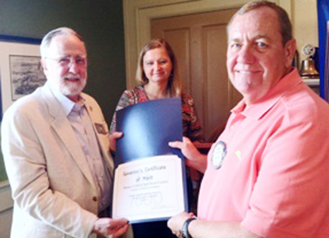 Frank Ferrante (left), area governor of the Rotary Club, presented New Kent Rotary Club president Claude Carmack (right) and Jackie Smith (center) the Rotary Governor’s Certificate of Merit to the Rotary Club at its July 15 meeting. The award was granted for providing meritorious service to the locality and to the community in 2012-13.