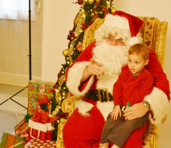 Three-year old Adam Weatherington is amazed by Santa Claus as he contemplates what he wants for Christmas during the New Kent Junior Women’s Club breakfast at Providence Forge Recreation Center.Andre' Jones photo