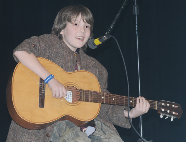 Indy Bennett performs a guitar/comedy act to capture first place in the grade 3-5 division before a standing room only crowd at Friday night's annual New Kent Elementary Talent Show.Alan Chamberlain photos