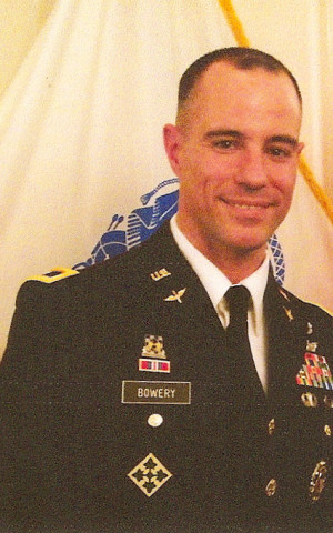 Bowery received his commission to the aviation branch of the U.S. Army in 1988 and graduated aviation officer advanced courses in 1997. Bowery has served stints overseas in Korea, Iraq, and Afghanistan over the last 15 years.