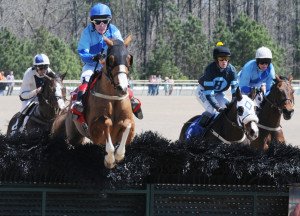 Horses and riders clear one of the fences in the first steeplechase race at Saturday's second annual Dogwood Classic hosted by Colonial Downs in New Kent County.Alan Chamberlain photos