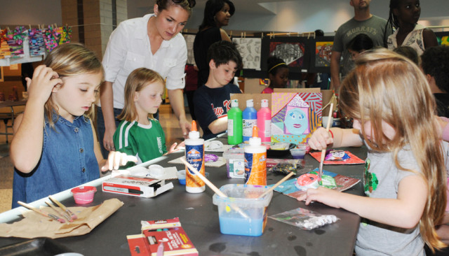 Kids try their skills at artwork during one of the workshops at Saturday's event.Alan Chamberlain photos