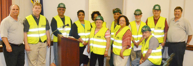 Members of Charles City’s Community Emergency Response Team (CERT) are recognized for the completion of their eight-week course during Charles City’s Board of Supervisors May 27 meeting. The group met once a week for three hours and received training in areas that included first aid, search and rescue, and fire safety. Class members are (l to r) Steve Woods (Emergency Training Services Instructor), Dallas Johnson, Byron Adkins Sr., Lesa Jones, Sheila Crump, Ruby Paige, Harry French, Sherri Bowman, John Barrows, Mike Doan, Vince Brackett, and Ed Dumavant (Emergency Training Services Instructor). Not pictured is Emergency Training Service Instructor Kathy Butler.