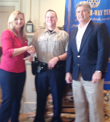 Jackie Smith, President of the New Kent Rotary Club (left), presents a check from the proceeds of the organization’s annual Christmas tree sales to the Sheriff’s Auxiliary. Accepting on behalf of the auxiliary department are Corporal Heath Jenkins (center) and Auxiliary Deputy Dwight Jenkins (right).