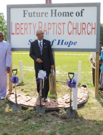Pastor James H. Johnson, Jr. prepares for ground breaking services for the construction of the new Liberty Baptist Church in Charles City on May 25. The ceremony was held in conjunction with the church’s 145th anniversary and attended by many community members.