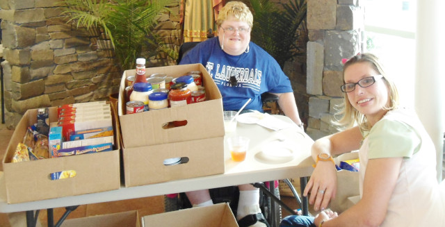 “Dessert and a Song” recently took place at St. Olaf Catholic Church. “All in His Name”, a contemporary Christian band played, with guests paying two non-perishable food items as admission, with each donation going to the church’s food pantry. Above, boxes of the items are prepared for distribution for needy families.