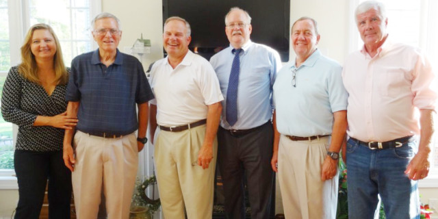 New Kent Rotary Club installed new officers for 2014-15 at its June 16 meeting. Pictured are (l to r) Jackie Smith (past president), Stran Trout (secretary), John Moyer (president), Mark Burnet (president-elect), Claude Carmact (treasurer), and Scott Page (Sergeant-at-Arms).