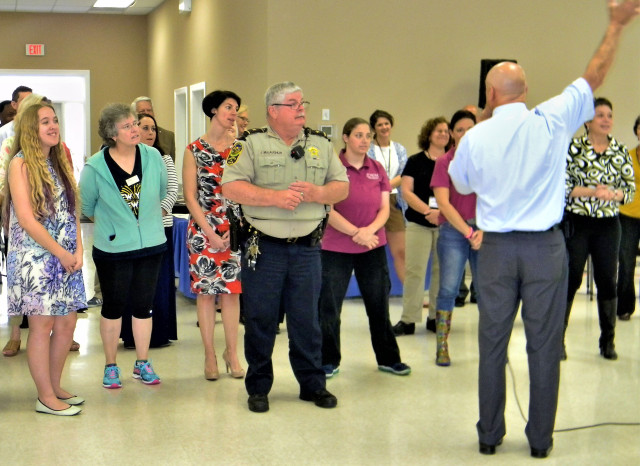 Charles City chairman Bill Coada (right) and New Kent Sheriff Joe McLaughlin Jr (center) lead a line-dancing lesson as part of the Chickahominy Triad’s Spring Fling on Apr. 4. The event, catering to seniors ages 55 and up, helps provide information, resources, and services to the elderly to prevent crime and encourage more community involvement.