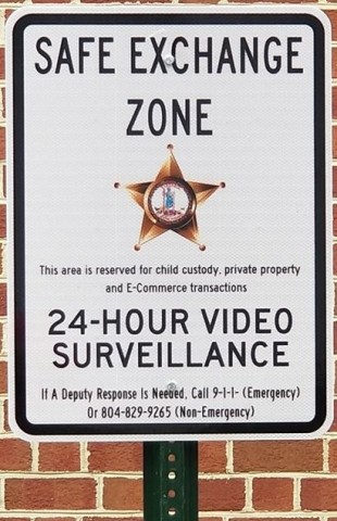 Charles City County Sheriff’s Office has established a “Safety Exchange Zone” in front of its office. The zone is utilized for monitoring the transfer of property, exchanging of online purchases, and custody transfers. The area is under video surveillance 24 hours a day and there are two available spaces for utilization.