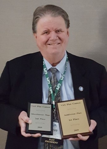 David Gardy, a local New Kent surveyor, was announced as the first-place winner in the subdivision plats category and second place winner in the miscellaneous maps category at the Virginia Association of Surveyors (VAS) general membership meeting held Apr. 23-27 in Herndon. The annual contest adheres to minimum standards set for by the National Society of Professional Surveyors and VAS, with entries judged by a panel of professionals.