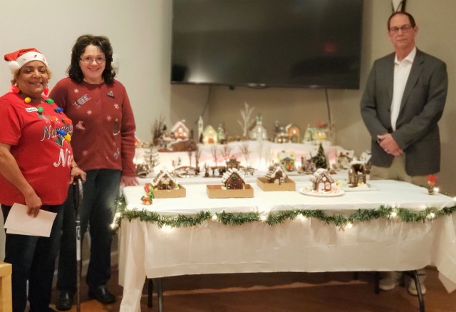 Marianne Gesotti’s design was the winner of Rock Creek Villa’s Gingerbread House Decorating Contest on Friday, Dec. 13. Pictured are (l to r) judges Gail Crewes, Deneal Harris, and New Kent District 2 supervisor Tommy Tiller.