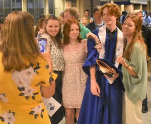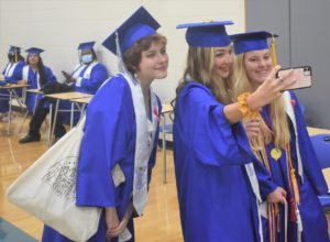 A selfie opportunity presents itself for (l to r) Magnolia Lang, Kirsten Miller, and Abby Lindsey prior to graduation ceremonies.