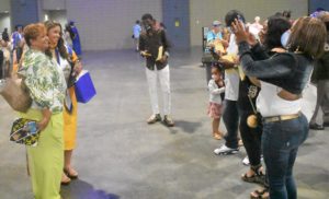 After the ceremony, new graduate Diamond Washington and mother Victoria Cox-Washington (left) celebrate the achievement as family members snap pictures.