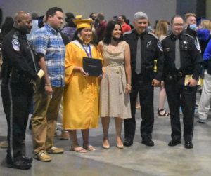 Lyric Smith, the daughter of the late and former Charles City County Sheriff Javier Smith, is joined by her brother Shane (second from left), mother Holly (center), and several law enforcement officers to celebrate her special day.