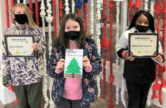 Three students from Charles City County Public Schools emerged as winners of the Charles City County Parks and Recreation 2021 Holiday Card contest. Winners are (l to r) Ella Nolen (2nd), Caitlyn Sheridan (1st), and Marleigh Smith (3rd).