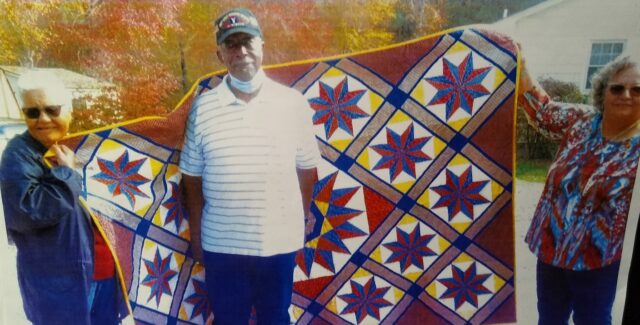 Charles City resident Charles Black (centered) was recently honored with a Quilt of Valor from the Quilts of Valor Foundation. A Quilt of Valor is awarded to a service member or veteran who has been touched by war and are handmade with the inscription “Thank you for your service and sacrifice in serving our nation.” Pictured with Black are his wife, Joanne (left) and stepdaughter, Jessica White (right).