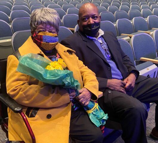 Mary Green (left), wife of the late Dr. Calvin Green, attends a presentation at New Kent High School as part of the school’s focus on local history. Dr. Green fought to end racial segregation in New Kent County’s school system, leading to the federally recognized landmark case Green vs. New Kent County School Board. A plaque hangs on the wall near the entrance of New Kent High School commemorating the event. Accompanying Mary Green at the presentation is her son, Charles Green.