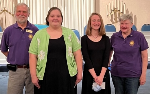 New Kent Lions Club have announced the winners of their Lions of Virginia Bland Music Scholarship that took place on Feb. 18 at Providence Forge Presbyterian Church. Vocalist Naomi Torres (second from left) and flautist Olivia Carey (second from right) will participate at the district level for an opportunity to win a $3,000 scholarship. Pictured with the students are New Kent Lions Club President Keith Fuhrmeister (far left) and secretary Mary MacDonald (far right).