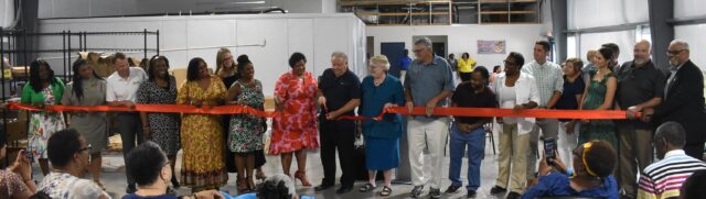 Charles City Board of Supervisors’ chairman Gilbert Smith (center) cuts the ribbon to signify the ceremonial opening of the Charles City County Food Pantry Wednesday morning. Located in the Ruthville area adjacent to the old high school, the $1.2 million facility was paid for in full through a $500,000 grant from the Department of Housing and Community Development, and contributions from S-Power, Bruce Howard, John Randolph Foundation, Bethany Foundation, and other local benefactors. The facility will begin distributions on Tuesday, Aug. 1. Pictures of the facility can be seen in our photo gallery online at www.nkccnews.com.Andre' Jones photos