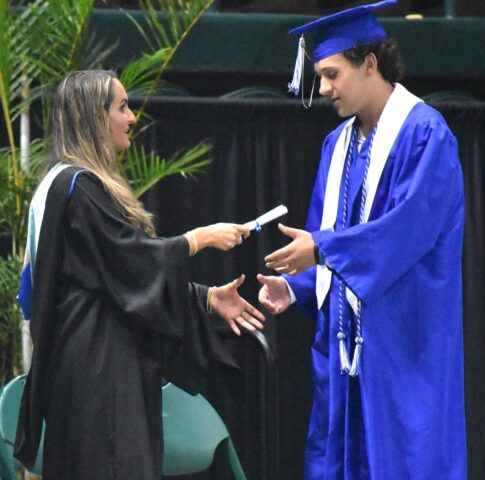 DSC_0453 By Andre Jones | June 7, 2024 6:26 pm Timothy Renick Jr. (right) is greeted by New Kent High School Principal Allison Strickland (left) as he crosses the stage.