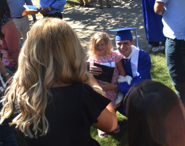 Even the smallest of supporters are happy to join in on photo activities as Jackson Strickland celebrates his milestone achievement.