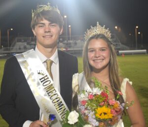 Parker Wood (left) was crowned king and Marley Bonds (right) won the title of queen during Friday night’s homecoming festivities at New Kent High School during halftime of the New Kent-Jamestown football contest.Robb Johnson photo
