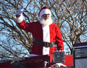 Above, Santa Claus takes time out from one of his busiest times of the year to wave to the crowd below as part of the 15th Annual Providence Forge Christmas Parade. The day produced beautiful weather as more than 100 entries made their way down Pocahontas Trail Sunday afternoon. Below, the NAACP Youth Council brings some excitement as they make their way down the route. At bottom, Girl Scout Troop 5746 show off their festive display with snowflake headbands to signify the holiday season. More than 125 pictures from the event can be seen in the photo gallery on our website at www.nkccnews.com.Andre' Jones photos