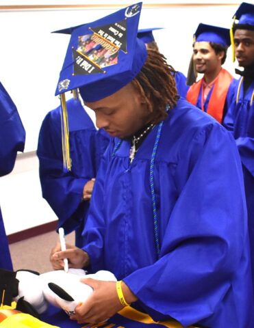 DSC_0026 By Andre Jones | May 31, 2025 12:53 pm Messiyah Greene inks his autograph on a stuff animal to signify the Class of 2025’s bond.