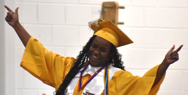 DSC_0132 By Andre Jones | May 31, 2025 12:53 pm Salutatorian India Harris can’t help but dance as she moves to the rhythm crossing the stage to receive her diploma.