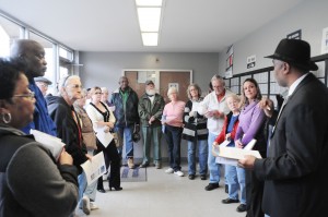 Barhamsville residents listen intently while Robert Gardner (far right), manager for post office operations, explains what the U.S. Postal Service has in store for their local post office during a Jan. 8 public meeting inside the Barhamsville facility. Hours are being curtailed, but the post office is not closing.Alan Chamberlain photo