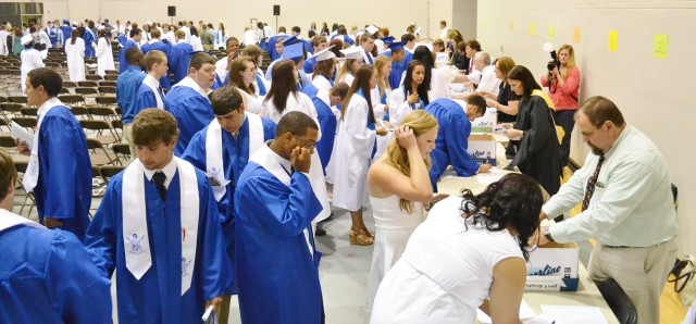 DSC_0152 By Andre Jones | June 14, 2014 1:48 pm Class of 2014 members line up to receive their diplomas after the ceremony.