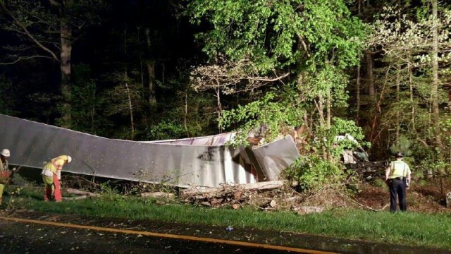 Virginia State Police spokesman Steve Vick said shortly before 8 p.m. near exit 220 (West Point), a 2005 Freightliner tractor-trailer was traveling westbound on Interstate 64 when it ran off the left side of the road and struck a tree. The truck partially overturned, spilling fuel and partially blocking the left lane.