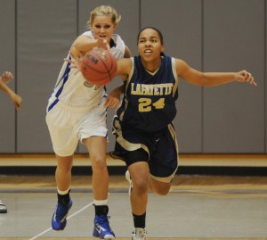 DSC_8856B By Andre Jones | December 12, 2012 1:14 pm Lady Trojan Karley Allen registers a steal as she slaps the ball away from Lafayette’s Desiree Jones.Alan Chamberlain photo