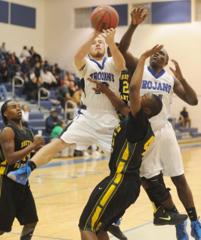 The Trojans played with patience, overcoming a four-point deficit on a Micah Scorsone three and a Travis Claytor basket off a steal to lead 19-18 after one period. Twice in the second quarter, the hosts extended their lead to three, once on Rashad Bentley’s basket off a Claytor assist to open the period and then on Parrish Braxton’s stick-back just under the five-minute mark for a 27-24 lead.
